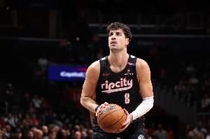 开拓者球员阿夫迪亚上半场表现依旧全面,进攻端手感也不错,但是罚球全部罚丢。