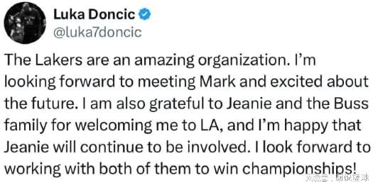 当然在换老板以后,湖人动态方面算是三喜临门,首先当家球星卢卡-东契奇,向新老板表了忠心。除了感谢巴斯家族,对自己来到洛杉矶后的强烈支持,卢卡-东契奇对于未来更加期待,希望有朝一日可以率领湖人拿到总冠军。