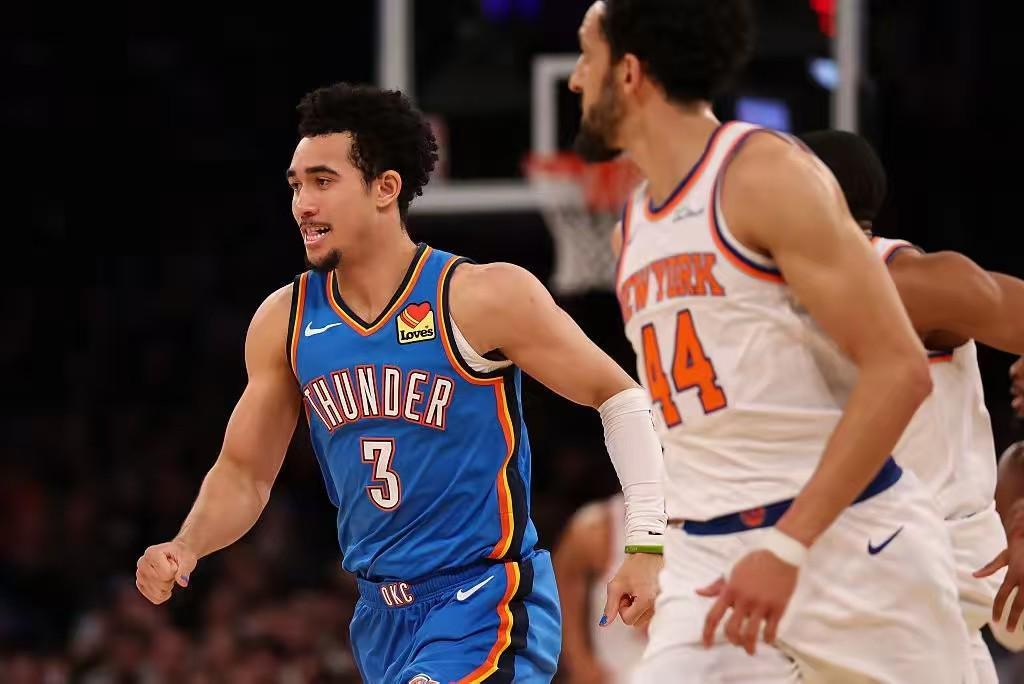 尼克斯本场打的很不错了,球队有6人得分上双,在大比分落后的情况下,在第3节的爆发反超比分,奈何尼克斯还是缺少关键先生,末节跟不上雷霆的强度,尤其是核心布伦森,本场被完全压制,虽然砍下16分15助攻,但是投篮18中5,效率很低,让尼克斯失去了进攻端最大威胁,也是输球的重要原因!